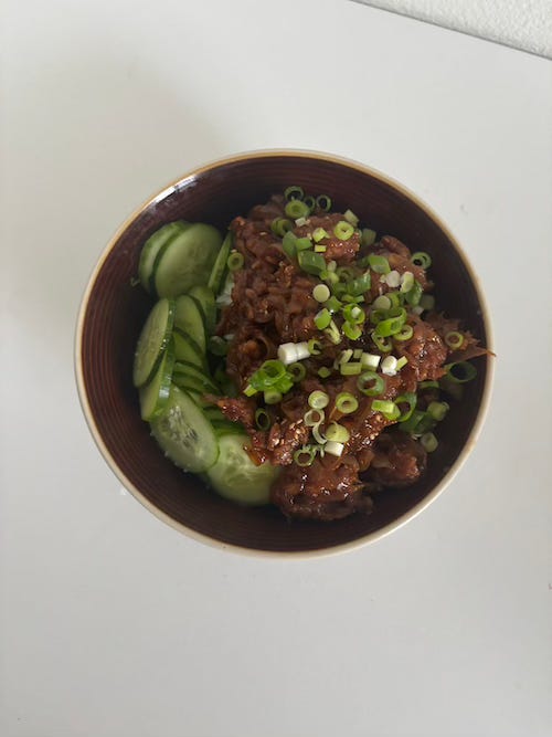 Imitation meat has come a long way since I first became a pescatarian in 2013. Recently, I’ve been making vegan bulgogi with lightly salted cucumbers or garlicky green beans, and it rules.