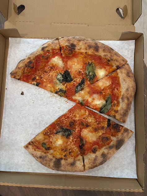 We picked up our monthly pastry at JinJu, ordered takeout pizza from Lovely’s (we had a gift card!), and went to Estes for Italian food.