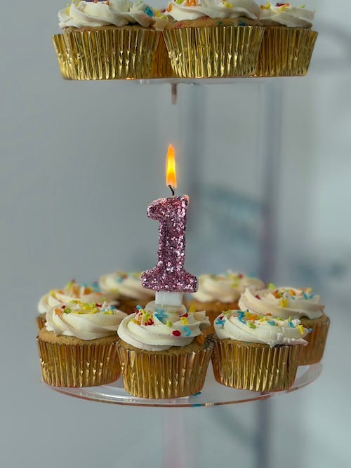 I had two fun orders on commission this month. First, I made funfetti cupcakes with Italian meringue buttercream for Alchemy’s first birthday party.